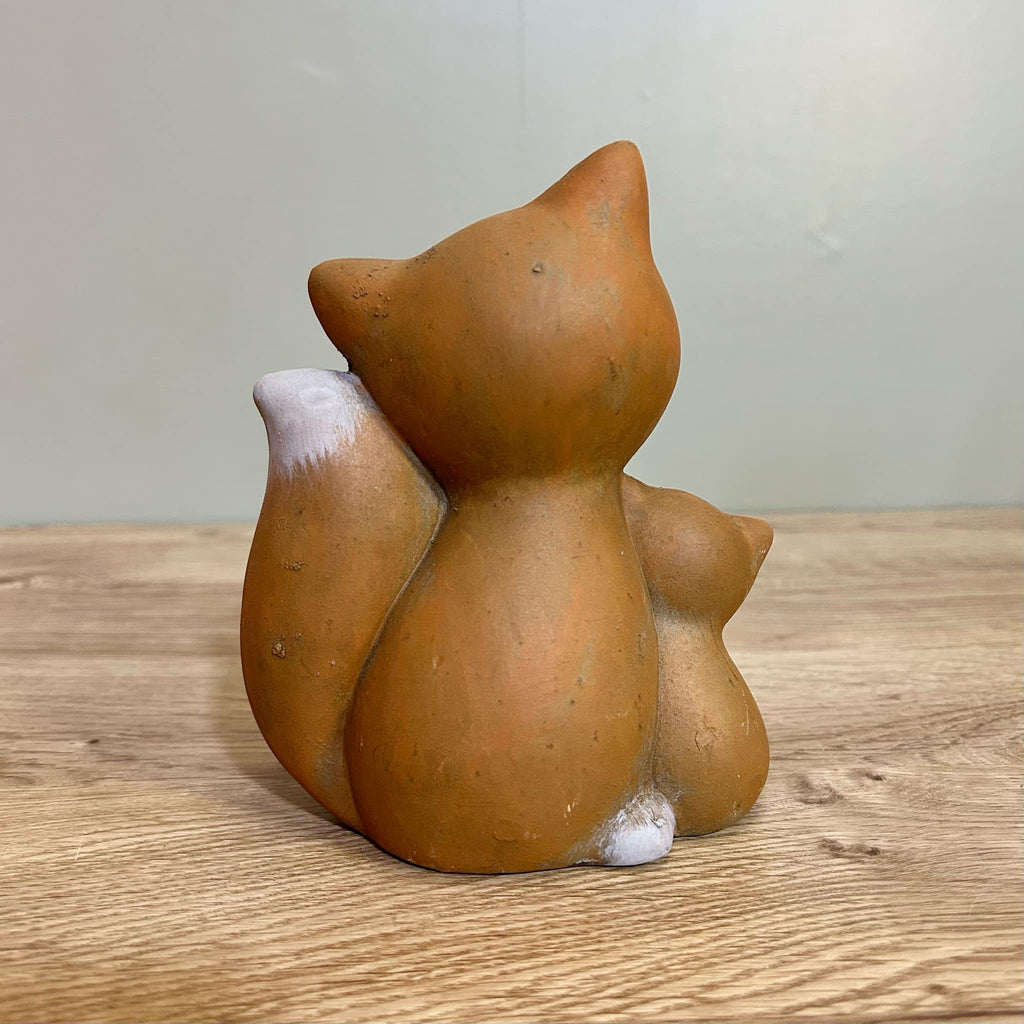 - This is a beautiful ornament in the style of a fox and cub, made from ceramic and painted. The item is free standing. Has a rough texture finish.
