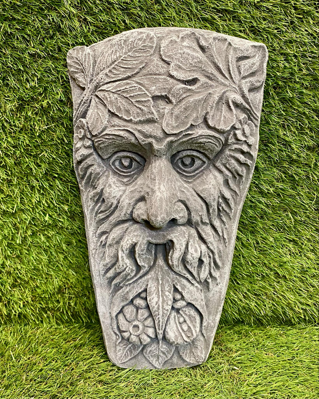 - This is a gorgeous wall plaque in the style of the green tree man. It is made from high quality frost free concrete, suitable for all seasons outdoors. The item looks great on display in the garden.