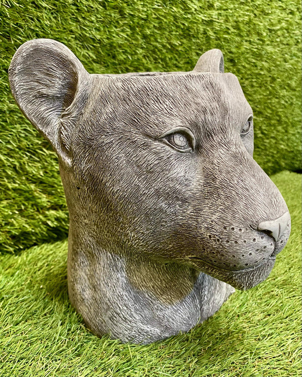 - This is a gorgeous garden ornament in the style of a lion's head. Made from high quality frost free concrete, suitable for all seasons outdoors.