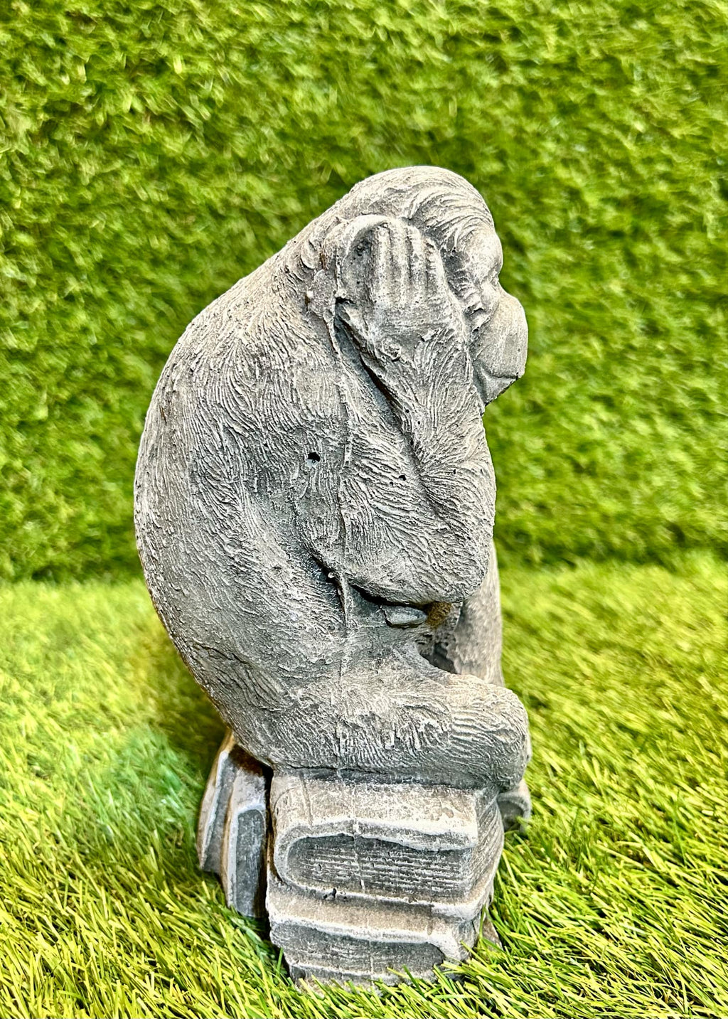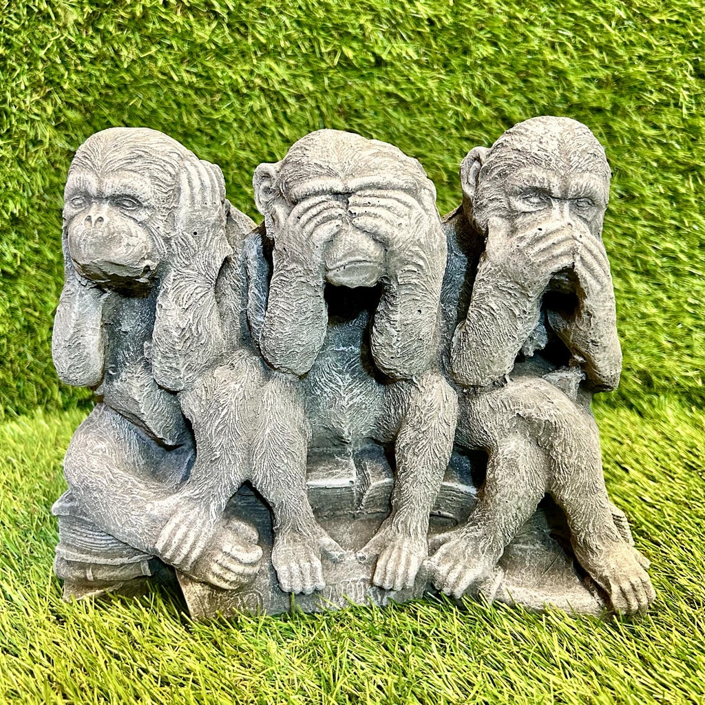 - This is a fantastic concrete ornament in the style of three monkeys depicting hear, see, speak no evil. It is made from high quality frost free concrete, painted using weather resistant paint suitable for all seasons outdoors.