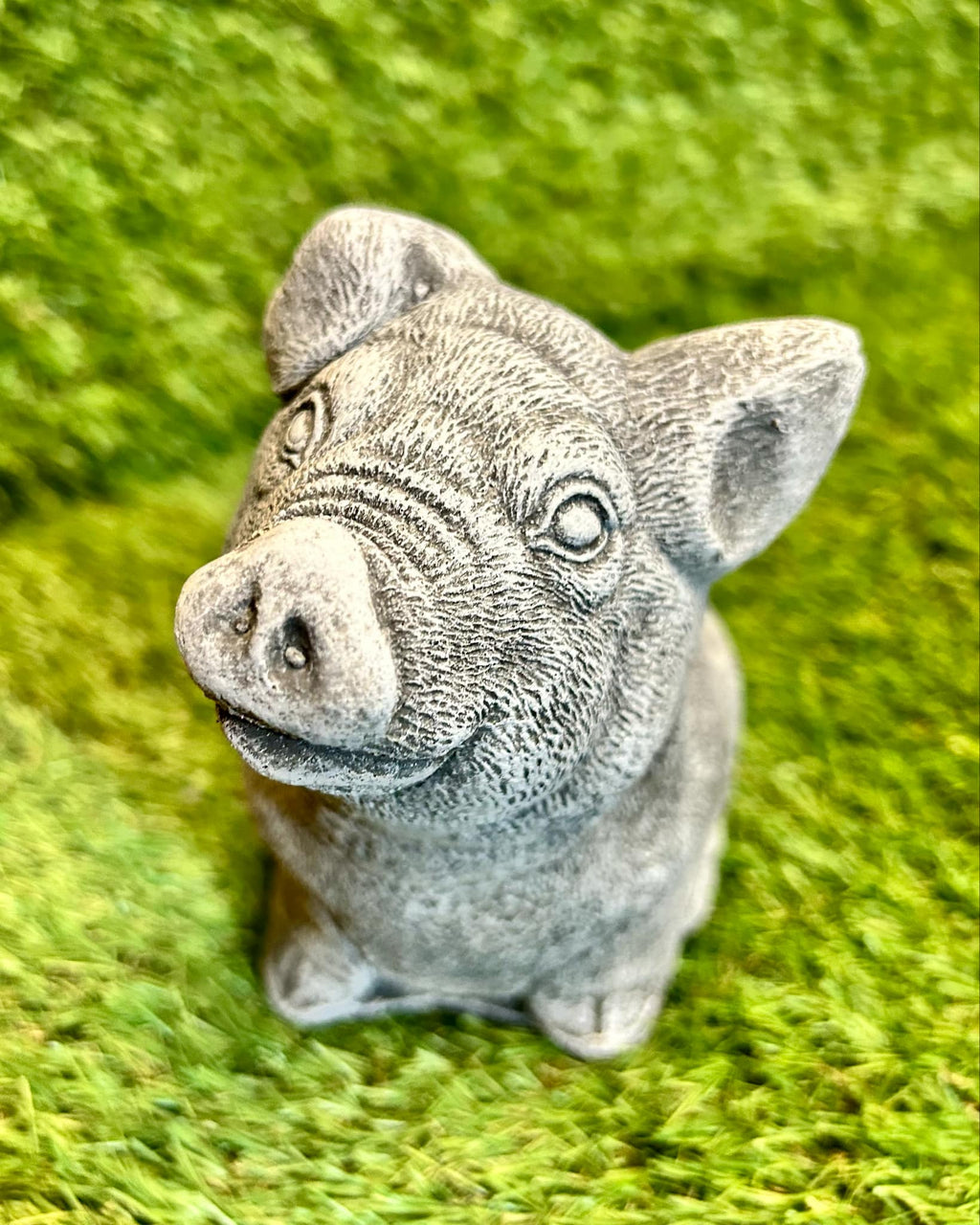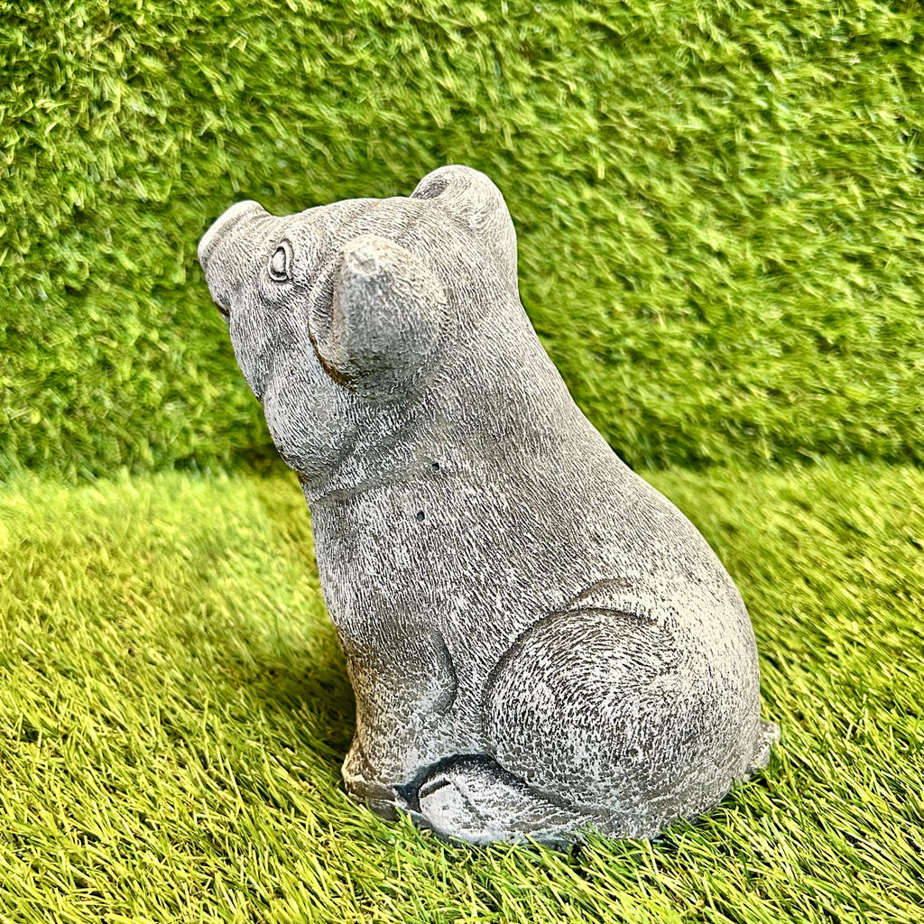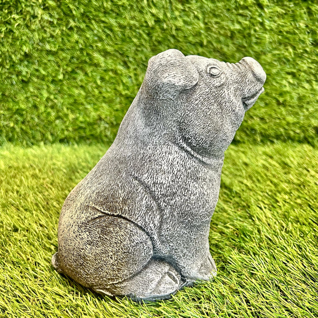 - This is a gorgeous ornament in the style of a pig sitting. It is beautifully hand crafted made from high quality frost free concrete & weather resistant paint suitable for all seasons outdoors.