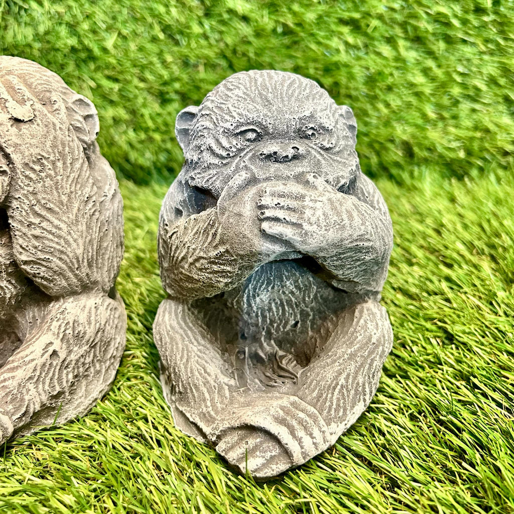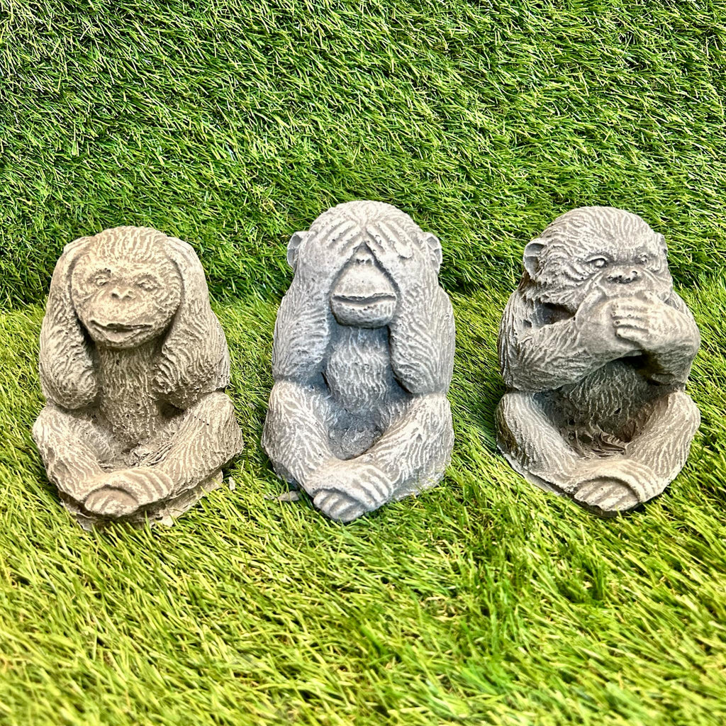 - These are lovely little ornaments in the style of three monkeys depicting hear, see, speak no evil. It is made from high quality frost free concrete, painted using weather resistant paint suitable for all seasons outdoors.