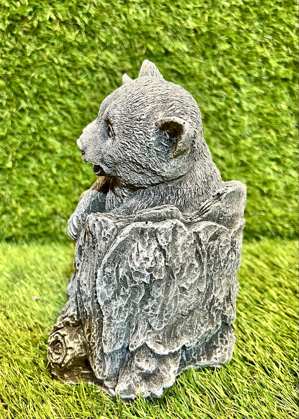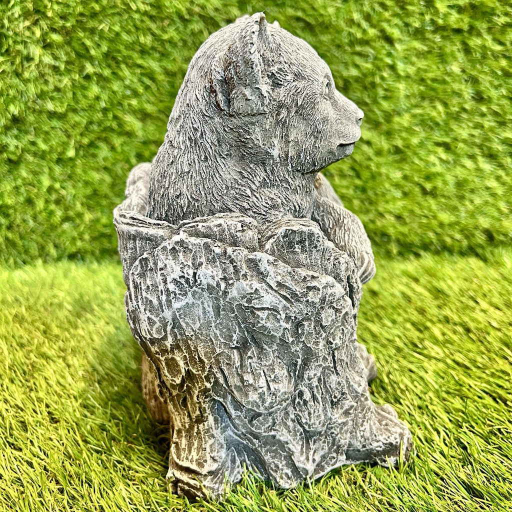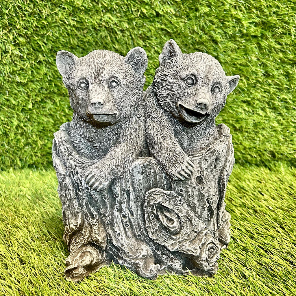 - This is a gorgeous ornament in the style of two baby bears in a stump. It is beautifully hand crafted made from high quality frost free concrete & weather resistant paint suitable for all seasons outdoors.